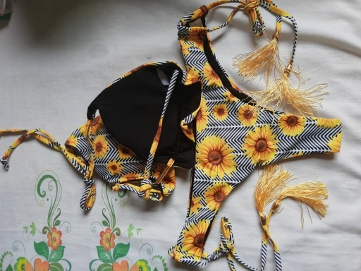 QUE TAL TER BIQUÍNI, CALCINHA CINTURA BAIXA SEMI FIO FORRADO E TOP CORTININHA COM AMARRAÇÃO NO PESCOÇO E BOJOS REMOVÍVEIS.
